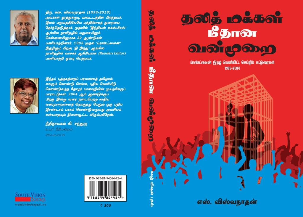 மூத்த பத்திரிகையாளர் மறைந்த திரு. எஸ். விஸ்வநாதன் அவர்களின் கட்டுரைகள் சாதி சமூகத்தின் செயல்பாட்டையும் குறிப்பாக தலித் மக்களின் வாழ்க்கையையும் நம் முன்னே படம்பிடிப்பதன் முக்கியத்துவத்தை நாம் உணரலாம். தமிழகத்தின் குறிப்பிட்ட ஒரு காலகட்டத்தை ரத்தமும் சதையுமாக நம்முன் இது வைக்கிறது. இளம் பத்திரிகையாளர்களுக்கான வழிகாட்டி நூல் இது. தலித் மக்கள் உள்ளிட்ட ஒடுக்கப்பட்ட மக்களுக்கான கொள்கை உருவாக்கத்தில் ஆதார ஆவணமாக இது பயன்படும். சாதி சமூகத்தில் வாழும் இளைஞருக்கு இந்தக் கட்டுரைகள் சனநாயகத்தை அறிமுகப்படுத்தும்.