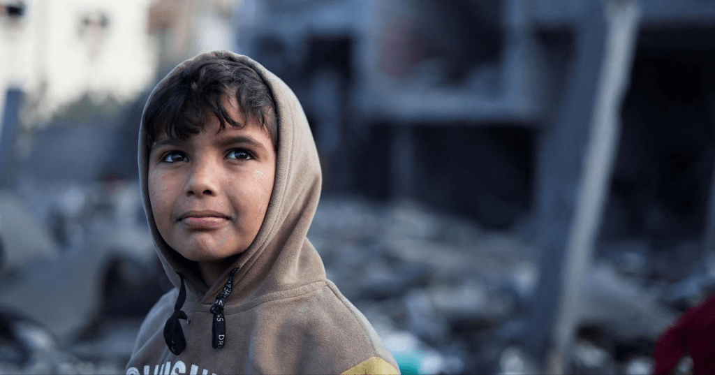 - A Palestinian boy at the site of Israeli strikes on a mosque and houses, in Rafah in the southern Gaza Strip on January 25. | Ibraheem Abu Mustafa/ Reuters
