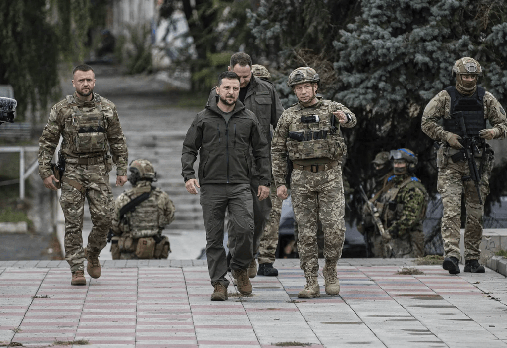President Volodymyr Zelensky (center left) meets with General Oleksandr Syrskyi, September 2022. (Photo by Metin AktaÅ/Anadolu Agency via Getty Images.)