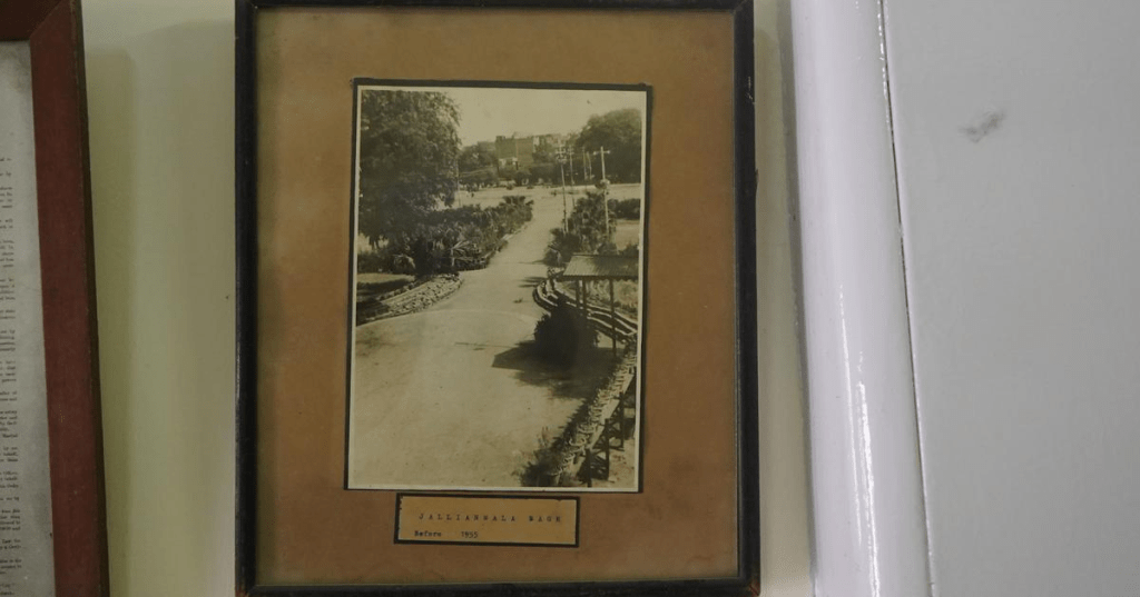 An old photo of the Jallianwala Bagh grounds framed in the office of the Jallianwala Bagh Memorial Trust. | Utsab Chatterjee