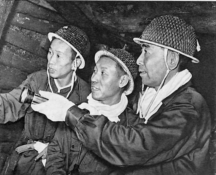 Zhou Enlai inspecting hydraulic coal drilling at the Tangchiachuang Mine at the Kailan Colliery, 1958