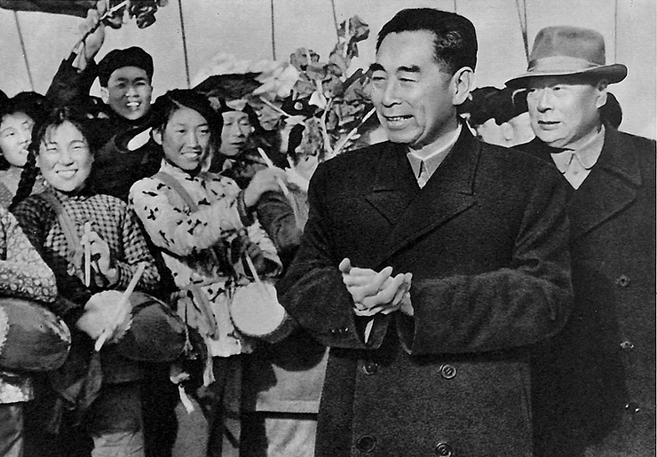 Comrade Zhou Enlai singing revolutionary songs with youth from around the People’s Republic