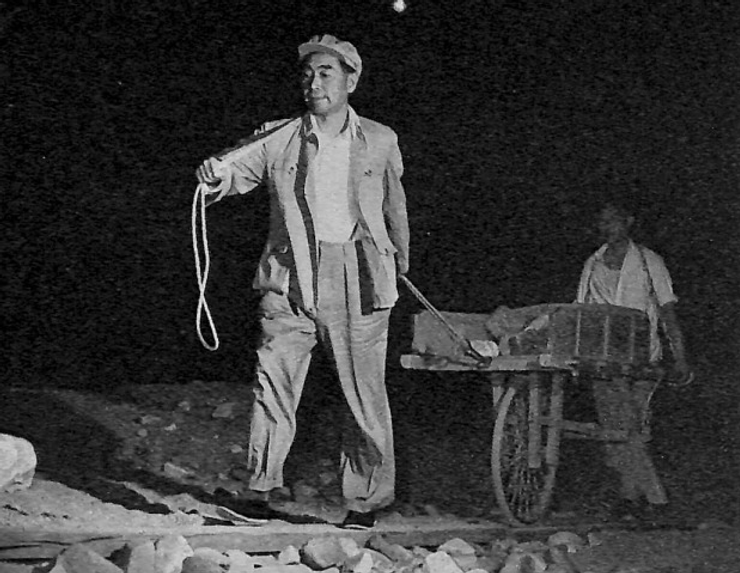 Comrade Zhou Enlai works at the Ming Tomb Reservoir construction site in Beijing, June 1958